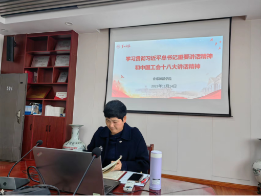 2024年03月05日11月14日下午,音乐舞蹈学院贯彻习近平总书记重要讲话精神和中国工会十八大精神的集中学习研讨会在会议室举行,院党委书记、分工会主席邹华秀作主题报告,全院教师参加了会议。邹华秀书记强调了充分认...