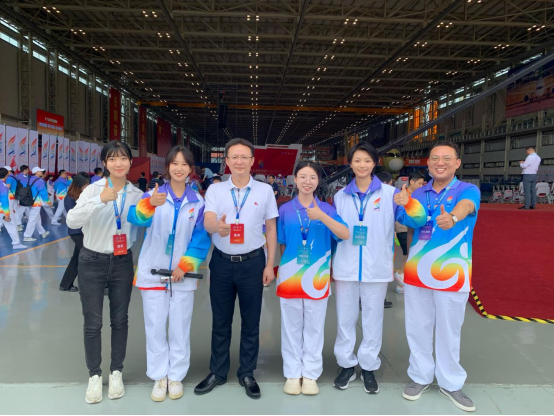 图6 湖南省代表队与湖南省教育厅副厅长兰勇、就业指导中心事业发展部部长王彬合影留念