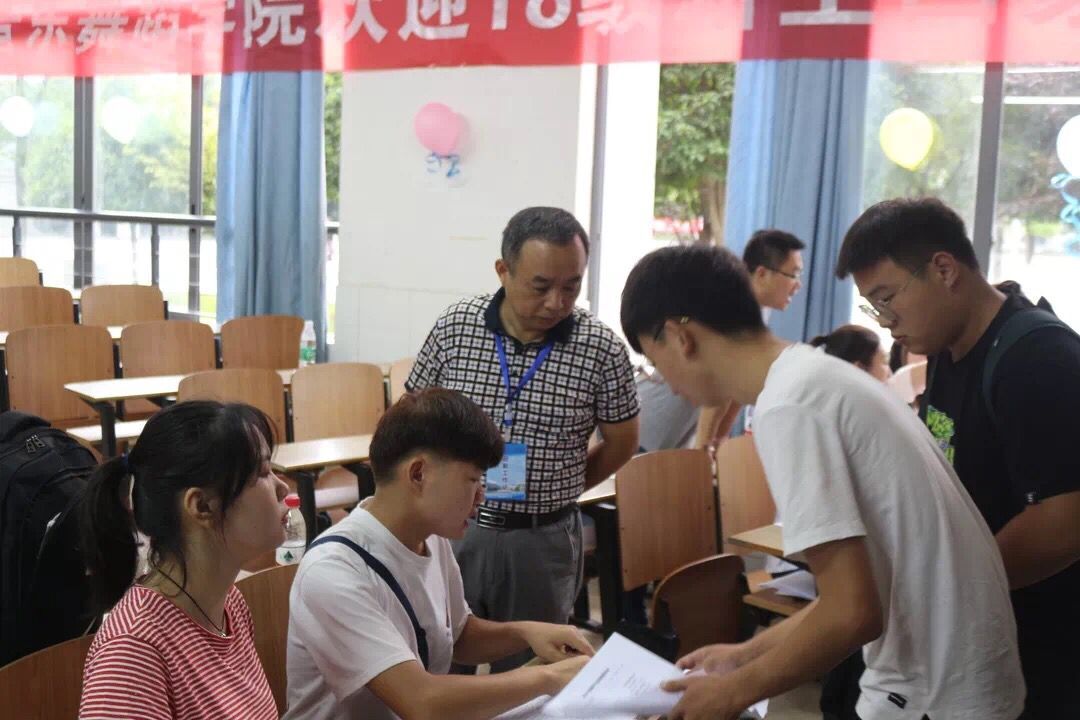 新生报到工作从早上七点正式开始。新生们办理完相关入学手续后,在学长学姐的陪同下熟悉校园环境、领取军训服装、进行财务缴费,完成一系列的报到流程。党总支书记谭顺来、党总支副书记杨丹全程指导迎新工作,对辛劳付出的学生干部给予鼓励,为新生与家长答疑解难。