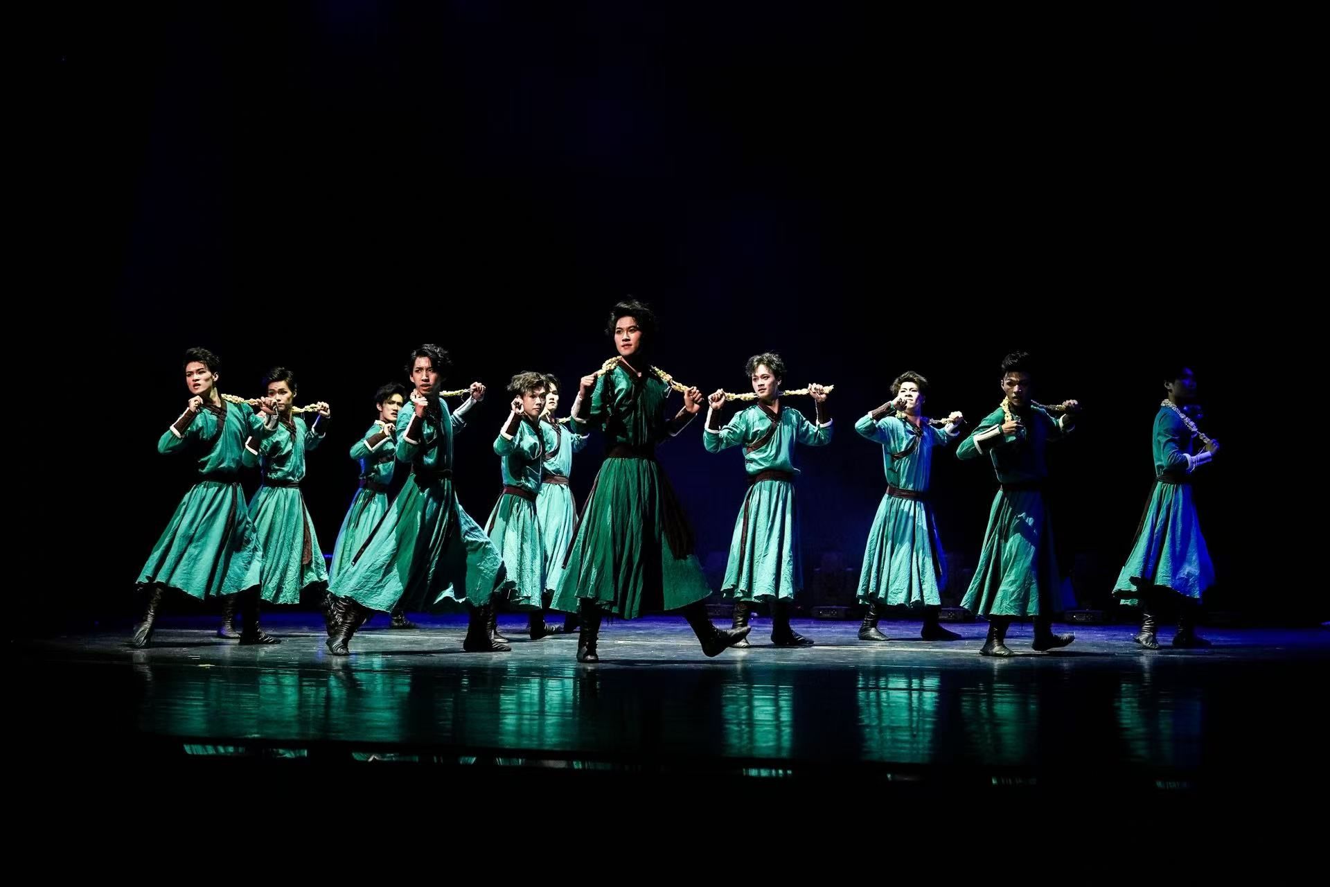 晚会以“破茧”为主题,聚焦舞蹈学子从课堂训练到舞台绽放的蜕变历程,展现湖南第一师范学院音乐舞蹈学院“教、学、演、创”一体化的育人实践。汉族民间舞《溯跃》以铿锵有力的舞步诠释奋勇前进的时代精神,瞬间点燃全场热情;蒙古族舞蹈《沙嘎沙嘎》以欢快奔放的节奏与舒展豪迈的舞姿,展现草原儿女对生活的炽热情怀;傣族舞蹈《陶醉了》则以柔美灵动的韵律,描绘傣家少女在山水间翩然沉醉的诗意画面;古典舞《青山远黛》以婉约飘逸的身韵,勾勒水墨丹青般的东方美学意境,彰显中华传统文化的深邃魅力。通过民族民间舞、古典舞、现代舞等多元形式,展现学子扎实功底与艺术创造力。