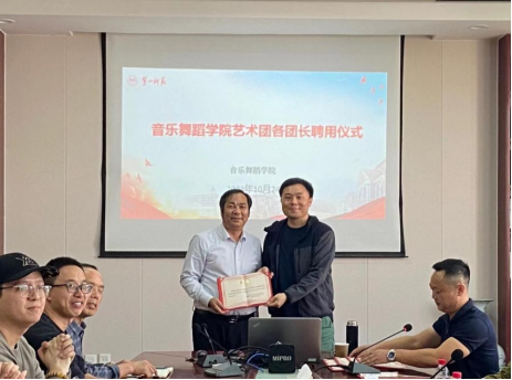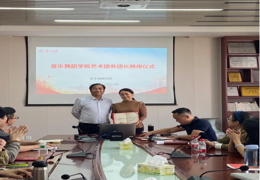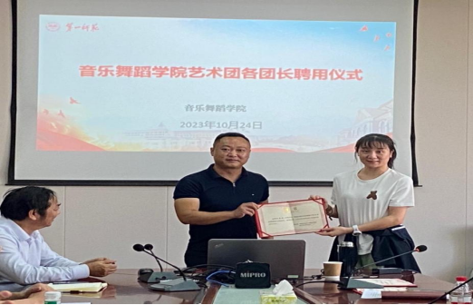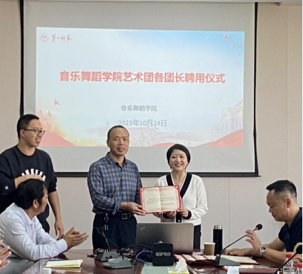 2023年10月24日下午,音乐舞蹈学院举行了新一届艺术团团长与分团团长聘任仪式。张应华院长、谭小红副书记、刘炜副院长与各系正副系主任、艺术团与分团团长、青年教师代表出席了会议,刘炜副院长主持会议。