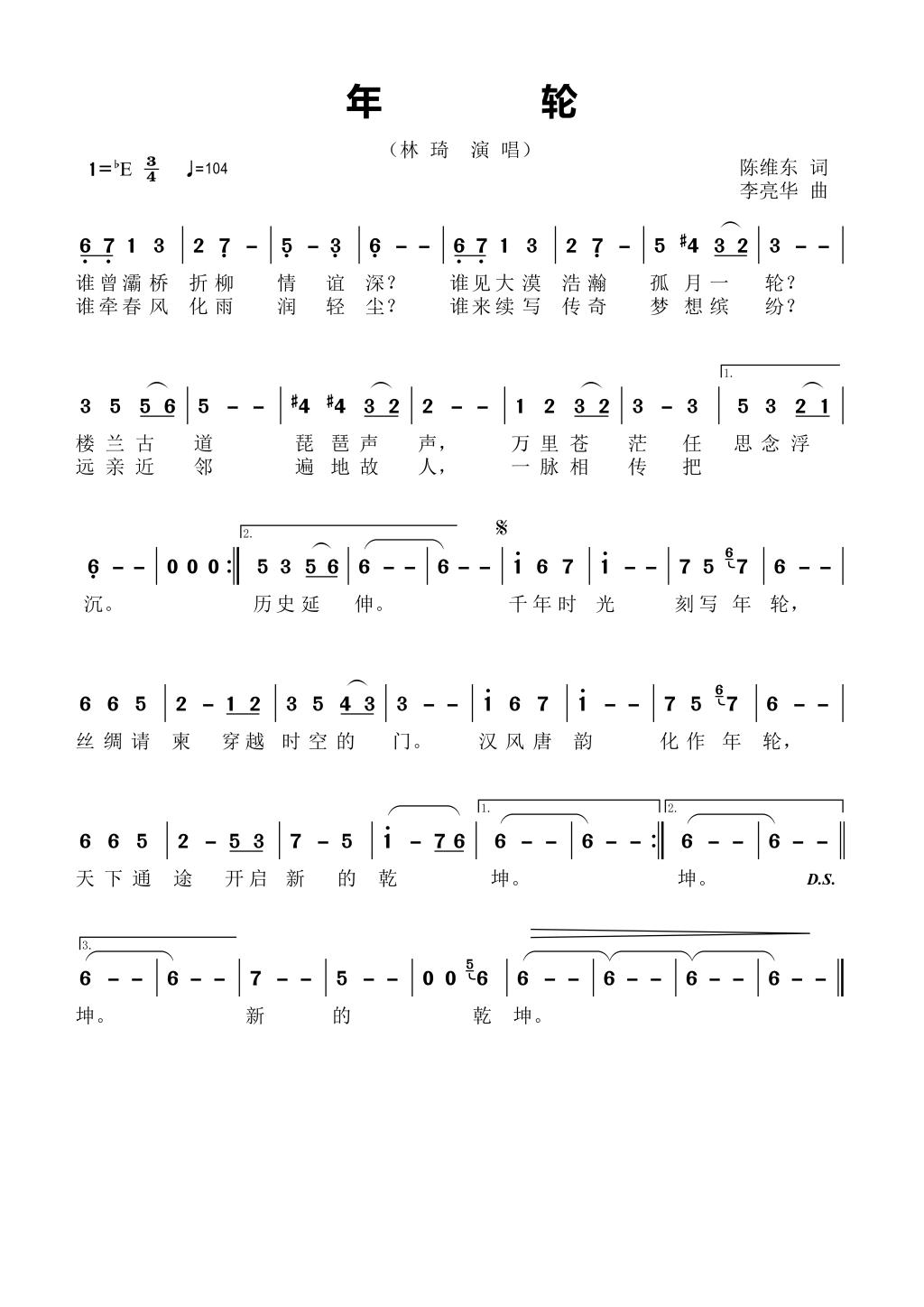作曲作品:《年轮》李亮华曲、陈维东词、林琦唱