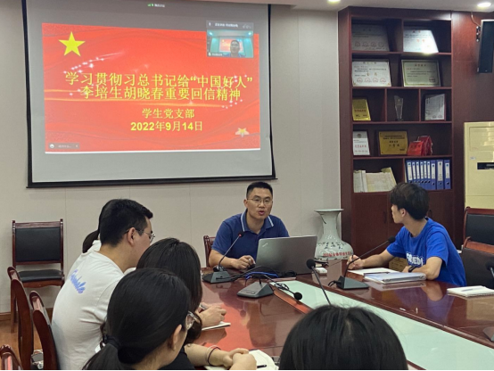 9月14日晚九点,学生党员支部召开党员大会,学习习近平总书记给“中国好人”李培生胡晓春重要回信精神。全体学生党员、部分入党积极分子线下线上同步同频,一起学习重要回信精神,交流分享学习心得体会。