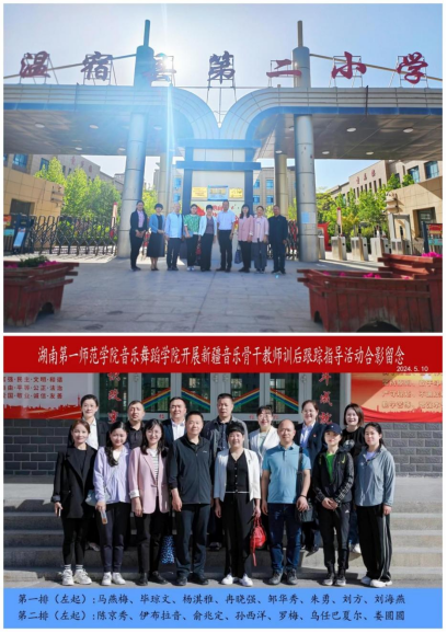 为深入了解2021-2023“新疆县级小学音乐骨干教师提升培训”参训教师的返岗实践应用情况,强化参训教师训后持续跟踪指导,进一步提升培训成效,按照新疆维吾尔自治区教育厅的通知要求,我院于5月7日-5月12日分别到阿克苏地区温宿县第二小学、伊犁哈萨克自治州特克斯县第六小学开展训后跟踪指导活动。此次活动由学院党委书记邹华秀带队,学院党委委员杨淇雅、学院国培班主任朱勇、国培团队成员毕琼文老师参与,特邀一线名师长沙博才金鹰小学刘方老师参加指导活动。