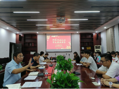 2021年10月06日?10月4日晚7时到8时30分,学院学工办在学院会议室举办“师范专业认证学生座谈培训会”。院长张应华、院总支副书记谭小红、全体辅导员以及50余名学生代表参加。学工办主任邓志刚主持培训会。 张应华院...
