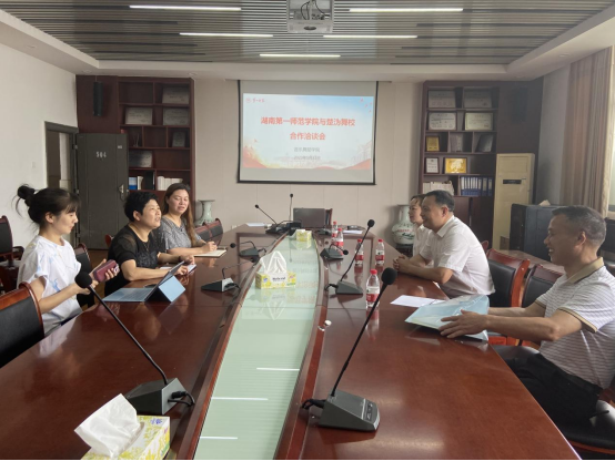 2023年06月25日2023年6月21日上午10:00,湖南第一师范学院音乐舞蹈学院党委书记邹华秀、副院长郭宇与乐田智作(湖南)影视技术服务有限公司(以下简称:乐田智作)校企合作负责人蒋灿、新媒体运营总监伊伊在鹤鸣楼504...