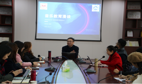 2022年10月13日2021年12月17日上午9点,湖南第一师范学院音乐舞蹈学院吴修林教授在会议室为全院博士、教授、副教授带来了《音乐教育漫谈》为主题的讲座。湖南第一师范学院党委委员、副校长江正云教授、音乐舞蹈学院院...