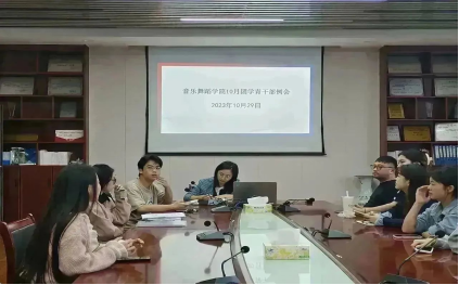2023年11月03日10月29日下午,我院在鹤鸣楼504会议室举行学生干部工作例会。院学工办主任杨淇雅、团学工作专干何睿两位老师,以及全体学生干部参加会议。团学青各部门负责人分别汇报了10月份工作开展情况、遇到问题以...