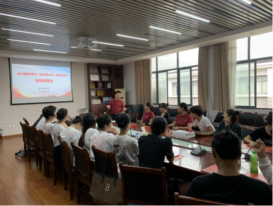 2024年03月05日6月5日,韶山湖湘旅游开发有限公司下属演艺团体“最忆韶山冲”红色演艺综合体,在我院鹤鸣楼504会议室举办舞蹈专业毕业生专场招聘会。院党委书记邹华秀、院长张应华、副书记谭小红、副院长郭宇、副院长...
